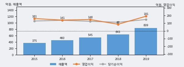 최근 3년간의 실적을 살펴보면 안정적 성장세를 보이고 있다. 최근 3년간 매출로 볼 때 매년 꾸준히 증가하고 있고 그 증가폭도 확대되고 있다.