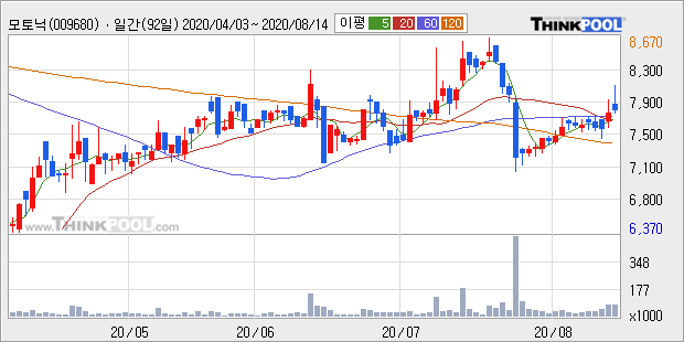 모토닉은 2019년 매출액 2076억원과 영업이익 97억원을 기록했다. 전년대비 매출은 6.3%, 영업이익은 34.0% 각각 상승했다. 이 회사의 매출액 증감률과 영업이익 증감률은 각각 코스피 상위 33%, 상위 32%에 해당된다.