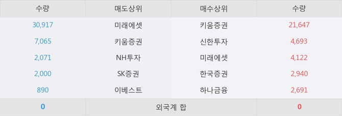 거래원 동향은 미래에셋, NH투자 등이 매도 상위 목록에 나타나고 있다.