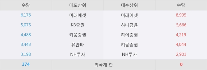 거래원 동향은 미래에셋, 하나금융, NH투자 등이 매수 상위 목록에 나타나고 있다.
