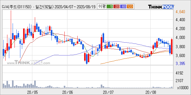 CJ씨푸드의 2019년 매출액은 전년대비 -1.0% 줄어든 1492억원이고, 영업이익 역시 전년대비 -10.4% 줄어든 37억원을 기록했다. 이 회사의 매출액 증감률과 영업이익 증감률은 각각 코스피 하위 40%, 하위 42%에 해당된다.