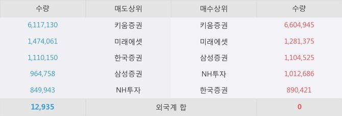 거래원 동향은 미래에셋, 삼성증권, NH투자 등이 매수 상위 목록에 나타나고 있다.