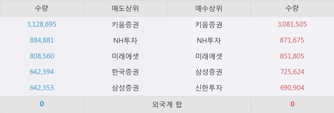 거래원 동향은 NH투자, 미래에셋, 삼성증권 등이 매수 상위 목록에 나타나고 있다.