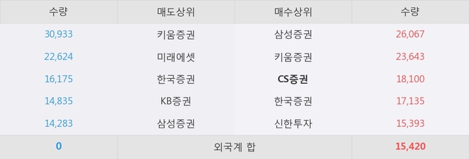 거래원 동향은 CS증권, 삼성증권이 매수 상위 목록에 나타나고 있다.