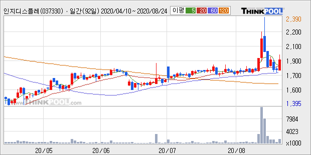 인지디스플레는 2019년 매출액 5578억원과 영업이익 238억원을 기록했다. 전년대비 매출은 8.4%, 영업이익은 7.6% 각각 상승했다. 이 회사의 매출액 증감률과 영업이익 증감률은 각각 코스닥 상위 43%, 상위 46%에 해당된다.
