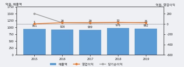 삼일의 2019년 매출액은 962억으로 전년대비 -1.5% 하락했고, 영업이익 역시 25억으로 전년대비 -24.5% 하락했다. 이 회사의 매출액 증감률과 영업이익 증감률은 각각 코스닥 하위 36%, 하위 38%에 해당된다.