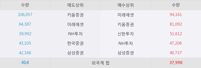 거래원 동향은 미래에셋, NH투자, 삼성증권 등이 매수 상위 목록에 나타나고 있다.