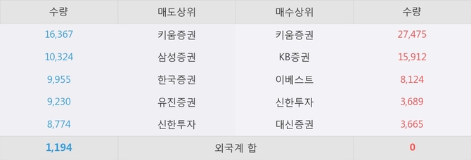 현재 거래원 동향은 키움증권, KB증권, 이베스트 등이 매수 상위 목록에 나타나고 있다.
