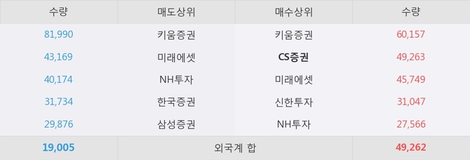 거래원 동향은 CS증권, 미래에셋, NH투자 등이 매수 상위 목록에 나타나고 있다.