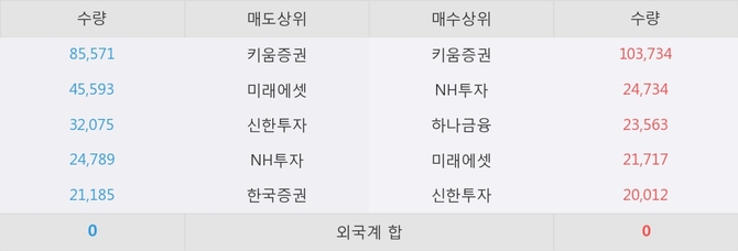 거래원 동향은 NH투자, 하나금융, 미래에셋 등이 매수 상위 목록에 나타나고 있다.