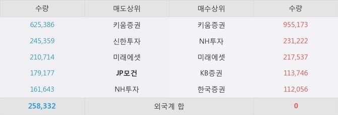 거래원 동향은 NH투자, 미래에셋 등이 매수 상위 목록에 나타나고 있다. 한편, 매도 창구 상위에는 JP모건이 눈에 띄고 있다.