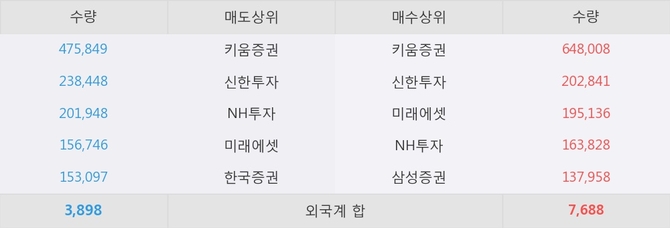 거래원 동향은 미래에셋, NH투자, 삼성증권 등이 매수 상위 목록에 나타나고 있다.