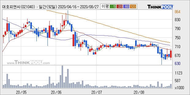 대호피앤씨는 2019년 매출액 2042억원과 영업이익 46억원을 기록했다. 전년대비 매출은 -2.7%, 영업이익은 -23.8% 각각 하락했다. 이 회사의 매출액 증감률과 영업이익 증감률은 각각 코스닥 하위 34%, 하위 38%에 해당된다.