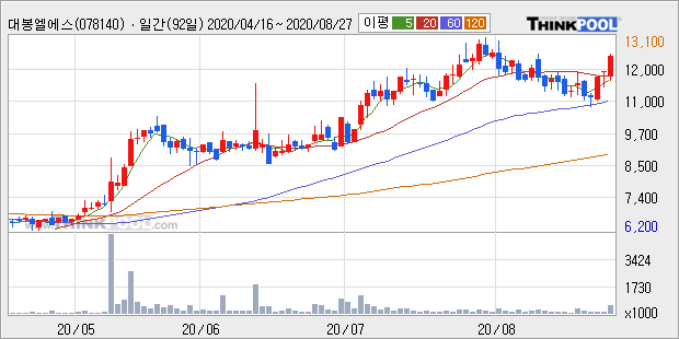 대봉엘에스의 2019년 매출액은 전년대비 -3.2% 줄어든 695억원이고, 영업이익 역시 전년대비 -7.2% 줄어든 74억원을 기록했다. 이 회사의 매출액 증감률과 영업이익 증감률은 각각 코스닥 하위 33%, 하위 47%에 해당된다.