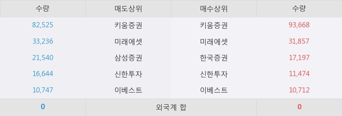 이 시각 주요 거래원은 미래에셋, 키움증권, 한국증권 등이 매수 상위 창구에 자리하고 있다.