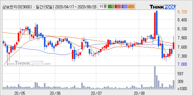 삼보판지의 2019년 매출액은 전년대비 -2.1% 줄어든 3670억원이고, 영업이익 역시 전년대비 -15.0% 줄어든 457억원을 기록했다. 이 회사의 매출액 증감률과 영업이익 증감률은 각각 코스닥 하위 35%, 하위 43%에 해당된다.