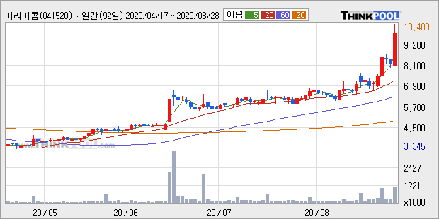 차트상 주가의 흐름은 현재 단기·중기 이평선이 정배열 상태로 전형적인 상승세를 보이고 있다. 최근 이 종목의 차트에서 최근 5일 매물대 돌파 등의 특이사항이 발생했다.