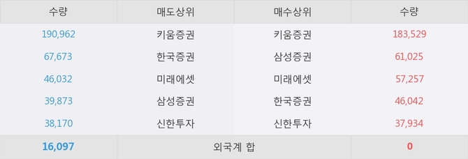 거래원 동향은 삼성증권, 미래에셋 등이 매수 상위 목록에 나타나고 있다.
