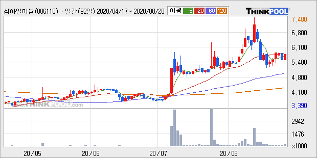 삼아알미늄의 2019년 매출액은 1911억으로 전년대비 11.6% 상승했고, 영업이익 또한 64억으로 전년대비 16.5% 상승했다. 이 회사의 매출액 증감률과 영업이익 증감률은 각각 코스피 상위 23%, 상위 41%에 해당된다.