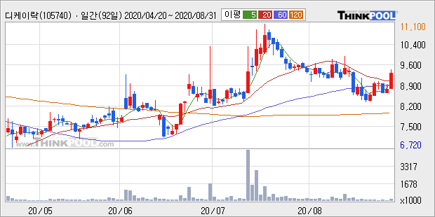 디케이락의 2019년 매출액은 전년대비 11.8% 늘어난 744억원이고, 영업이익 또한 전년대비 67.3% 늘어난 98억원을 기록했다. 이 회사의 매출액 증감률과 영업이익 증감률은 각각 코스닥 상위 36%, 상위 24%에 해당된다.