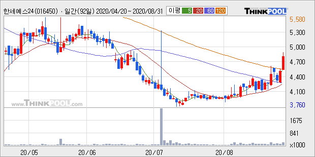 [그래프]한세예스24홀딩스 일봉 차트