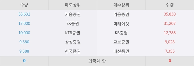 이 시각 주요 거래원은 미래에셋, 키움증권, KB증권 등이 매수 상위 창구에 자리하고 있다.