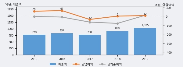 최근 실적을 살펴보면 2019년 매출액이 최근 5년 중 가장 높은 실적을 기록했음을 알 수 있다. 이전 최고 실적이었던 2018년 보다도 11.7%(107억 5천만원) 늘어난 것으로 나타났다.