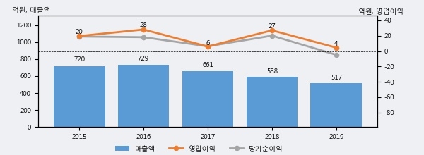 최근 3년간의 실적을 살펴보면, 매출액은 3년 연속 하락하고 있고 그 하락폭이 확대되고 있어서 투자자들은 주의깊게 살펴볼 필요가 있다.