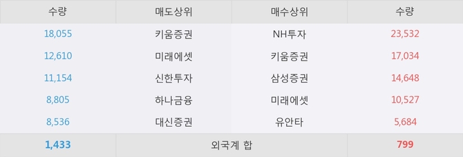 거래원 동향은 NH투자, 삼성증권, 미래에셋 등이 매수 상위 목록에 나타나고 있다.