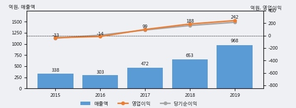 최근 3년간의 실적을 살펴보면 안정적 성장세를 보이고 있다. 최근 3년간 매출로 볼 때 매년 증가하고 있고 그 증가폭도 확대되고 있다.