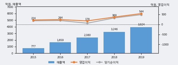 최근 3년간의 실적을 살펴보면 안정적 성장세를 보이고 있다. 최근 3년간 매출로 볼 때 매년 꾸준히 증가하고 있다. 다만 최근에 그 증가폭이 다소 감소하고 있다.