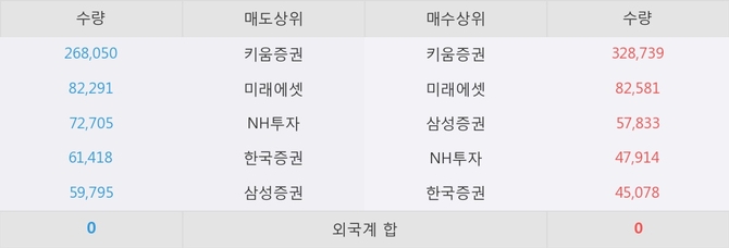 거래원 동향은 미래에셋, 삼성증권, NH투자 등이 매수 상위 목록에 나타나고 있다.