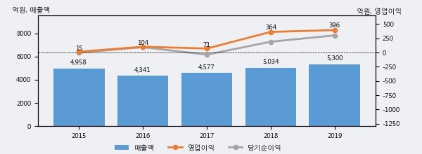 최근 3년간의 실적을 살펴보면 안정적 성장세를 보이고 있다. 최근 3년간 매출로 볼 때 매년 증가하고 있다. 다만 최근에 그 증가폭이 다소 감소하고 있다.