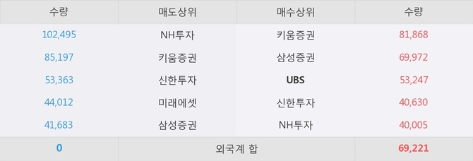 거래원 동향은 UBS, 삼성증권, NH투자 등이 매수 상위 목록에 나타나고 있다.