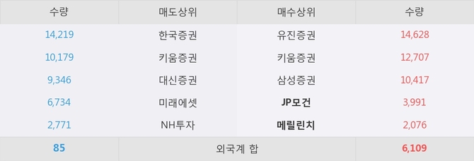 거래원 동향은 JP모건, 메릴린치, 삼성증권 등이 매수 상위 목록에 위치하고 있다.
