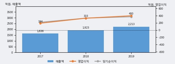 최근 실적을 살펴보면 2019년 매출액이 최근 3년 중 가장 높은 실적을 기록했음을 알 수 있다. 이전 최고 실적이었던 2018년 보다도 15.1%(290억 4천만원) 늘어난 것으로 나타났다.