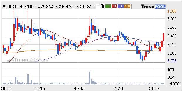 오픈베이스의 2019년 매출액은 전년대비 7.3% 늘어난 1574억원이고, 영업이익은 흑자전환해서 26억원을 기록했다. 이 회사의 매출액 증감률과 영업이익 증감률은 각각 코스닥 상위 46%, 상위 6%에 해당된다.