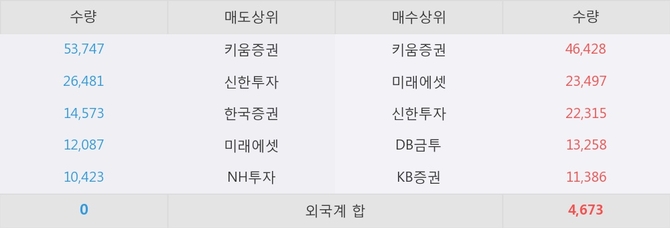 이 시각 주요 거래원은 미래에셋, 키움증권, 신한투자 등이 매수 상위 창구에 자리하고 있다.