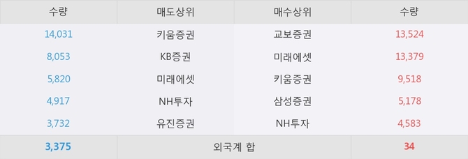 거래원 동향은 미래에셋, 삼성증권, NH투자 등이 매수 상위 목록에 나타나고 있다.