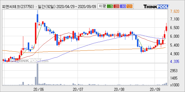 [그래프]피앤씨테크 일봉 차트