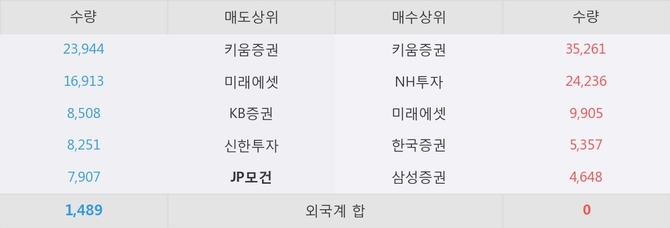 거래원 동향은 NH투자, 미래에셋, 삼성증권 등이 매수 상위 목록에 나타나고 있다. 한편, 매도 창구 상위에는 JP모건이 눈에 띄고 있다.