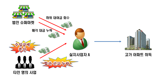 조사 결과 A라는 실제 사업자는 따로 있었고, A는 타인명의로 사업을 벌이며, 수억원의 소득을 신고하지 않고, 운영하던 법인사업장 매각대금 수십억원을 누락했다.