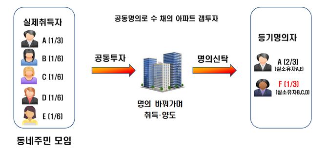 모 동네주민들은 소규모 자금으로 모임을 조직하고 다수의 아파트 및 분양권을 거래했다. 그러면서 타인명의로 등기해 양도소득세 회피하다 자금출처 조사에 적발됐다.