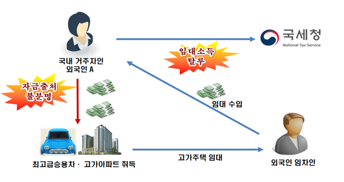 세법상 국내 거주하는 검은머리 외국인 A는 고가아파트와 최고급 승용차 등을 보유했으나, 이를 사들일 만한 뚜렷한 자금출처가 불분명했다.