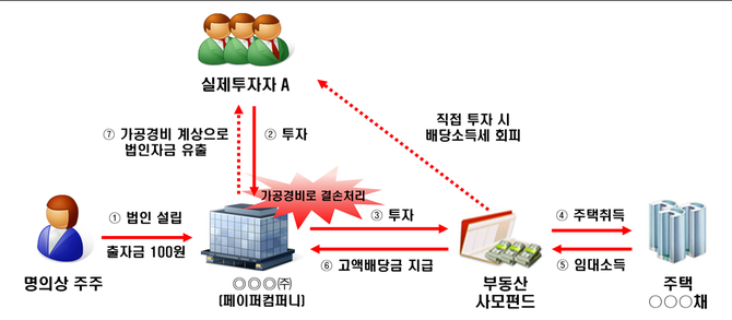 투자자 A는 다주택 대출제한 등 각종 부동산 규제를 회피하면서 임대수익과 시세차익을 얻을 목적으로 차명으로 세운 자본금 100원짜리 페이퍼컴퍼니를 통해 수십억원을 부동산 사모펀드에 투자했다.