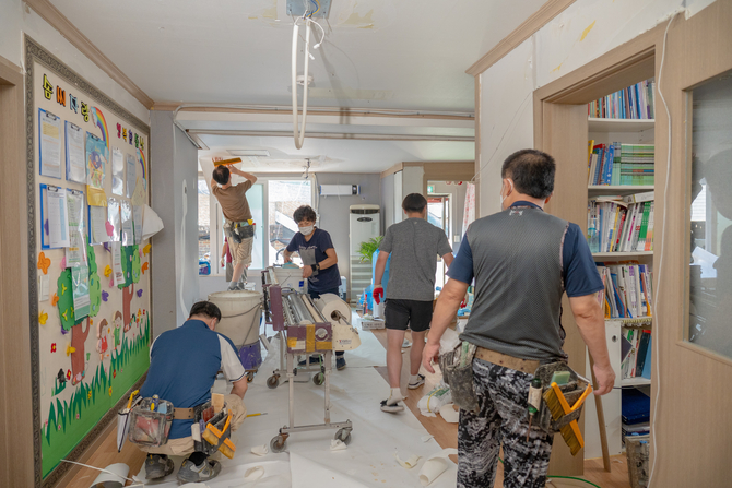 포스코건설은 37개 결연지역아동센터에서 환경개선 신청 접수를 받고, 환경개선이 시급한 순서에 따라 지난 18일 인천 남동구에 위치한 행복한동산 지역아동센터를 시작으로 10월까지 총 16개 지역아동센터에 환경개선활동을 실시할 계획이다.