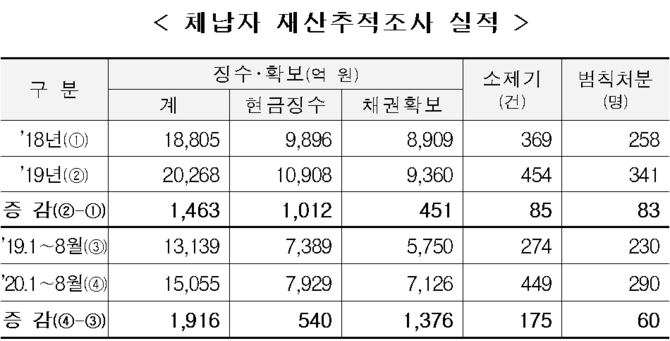 현 추세가 연말까지 유지된다면 올해 연간 체납자 추적조사 실적은 지난해보다 2000억원 이상 늘어나는 셈이다.