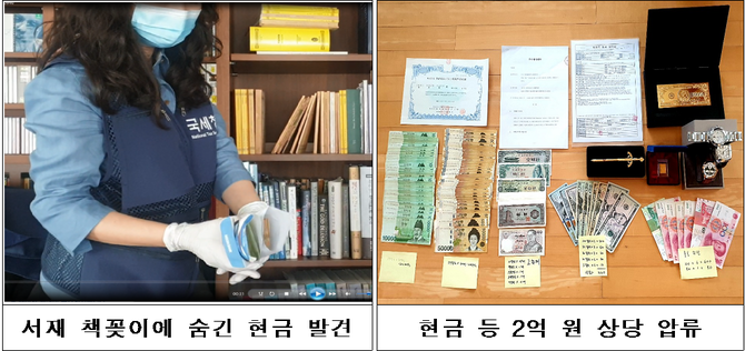 국세청은 현장 수색에서 현금 1억원 등 체납액 5억원을 전액 징수하고, C씨와 배우자에 대해 체납처분 면탈 및 방조혐의로 형사 고발했다.