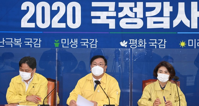 8일 국정감사에 앞서 민주당 국정감사 대책회의에서 김태년 원내대표는 대주주 양도세 확대를 2년 후로 유예하자며 속도 조절론을 제기했다.