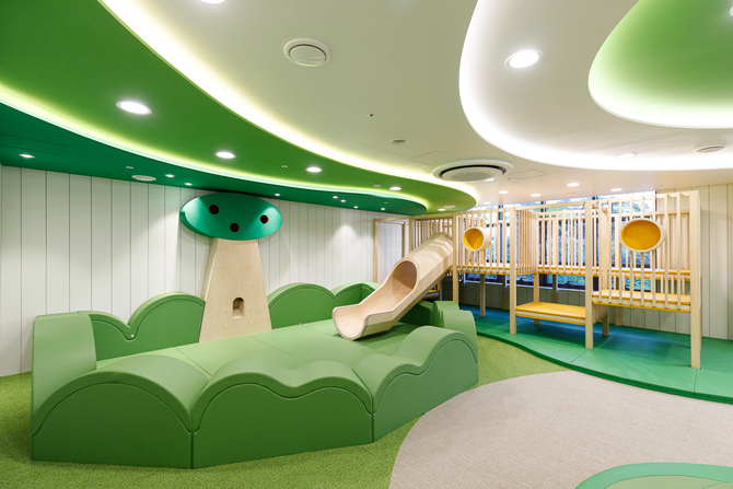 ‘H 아이숲’은 현대건설의 상징색인 노란색과 녹색을 활용해 '새싹이 자라 녹음이 되는' 모티브로 발전시켜 설계했다. 아이들은 나무 타기, 언덕 구르기, 돌 틈 사이 숨바꼭질 등 자연을 직간접적으로 체험할 수 있으며, 내부에는 어린이 도서관과 맘스카페가 함께 위치해 온 가족이 함께 여가를 누릴 수 있는 패밀리 라운지 개념의 커뮤니티로 설계됐다.